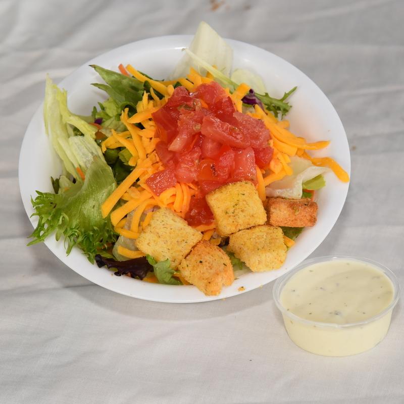 Romaine lettuce with shredded parmesan, seasoned croutons, and Caesar dressing.